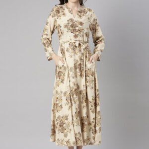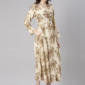 Neerus Cream Casual Maxi Floral Dresses