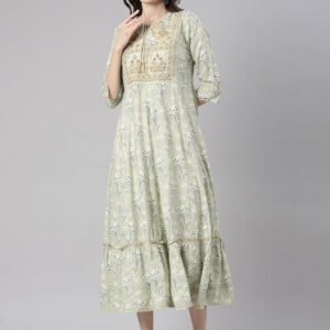 Neerus Green Casual Maxi Floral Dresses