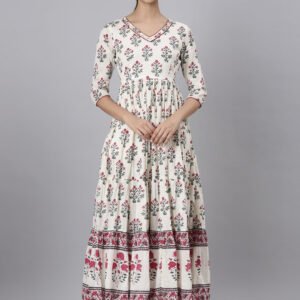 Neerus Off White Casual Maxi Floral Dresses