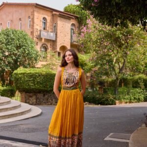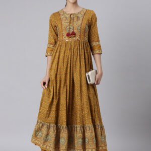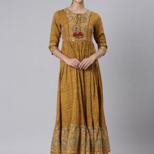 Neerus Mustard Casual Maxi Floral Dresses