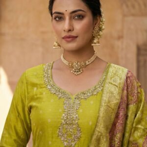 Mehadi Green Silk Zari Floral Embroidered Three Piece Set