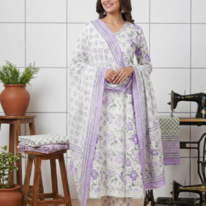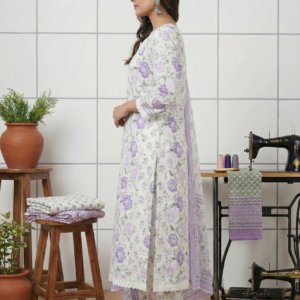 Lavender Cotton Floral Hand Embroidered Three Piece Set