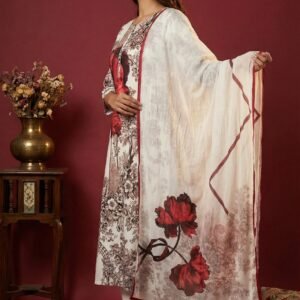 Off White Cotton Floral Digital Printed Three Piece Set