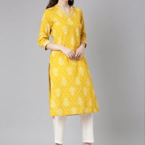 Neerus Mustard Casual Floral Straight Kurta