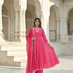 Magenta Georgette Mirror Embroidered Three Piece Set