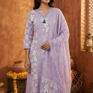 Lavender Cotton Floral Hand Embroidered Three Piece Set