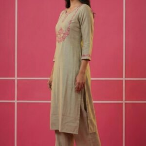Grey Muslin Hand Embroidered Two Piece Set