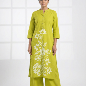 Lime Green Cotton Digital Print Two Piece Set